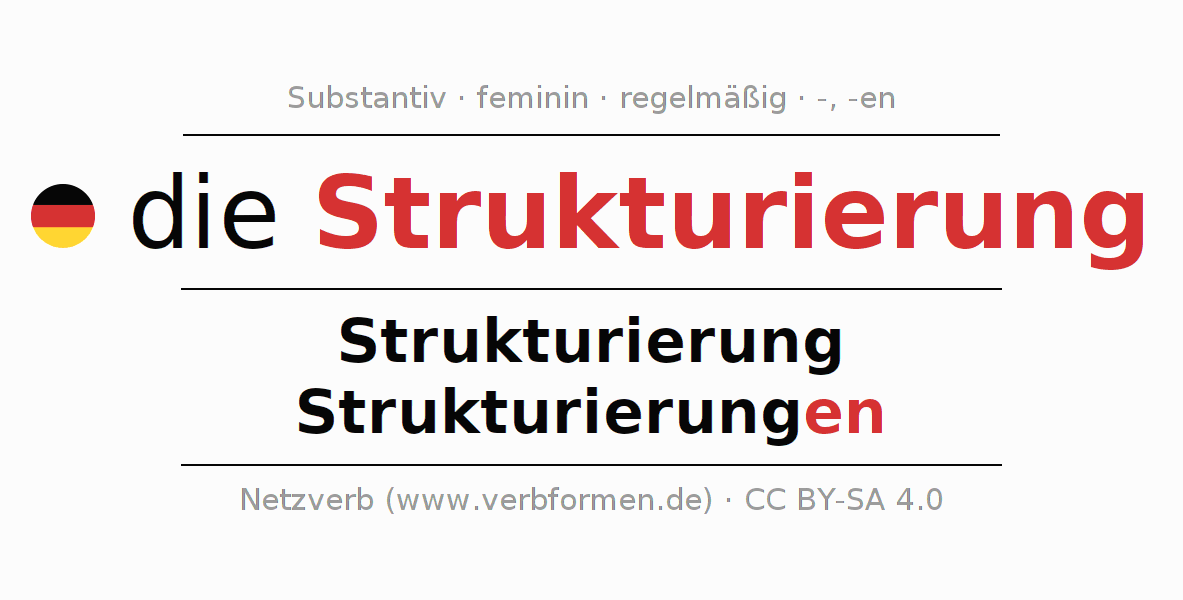 - Singular: die Strukturierung, der Strukturierung, der Strukturierung, die Strukturierung