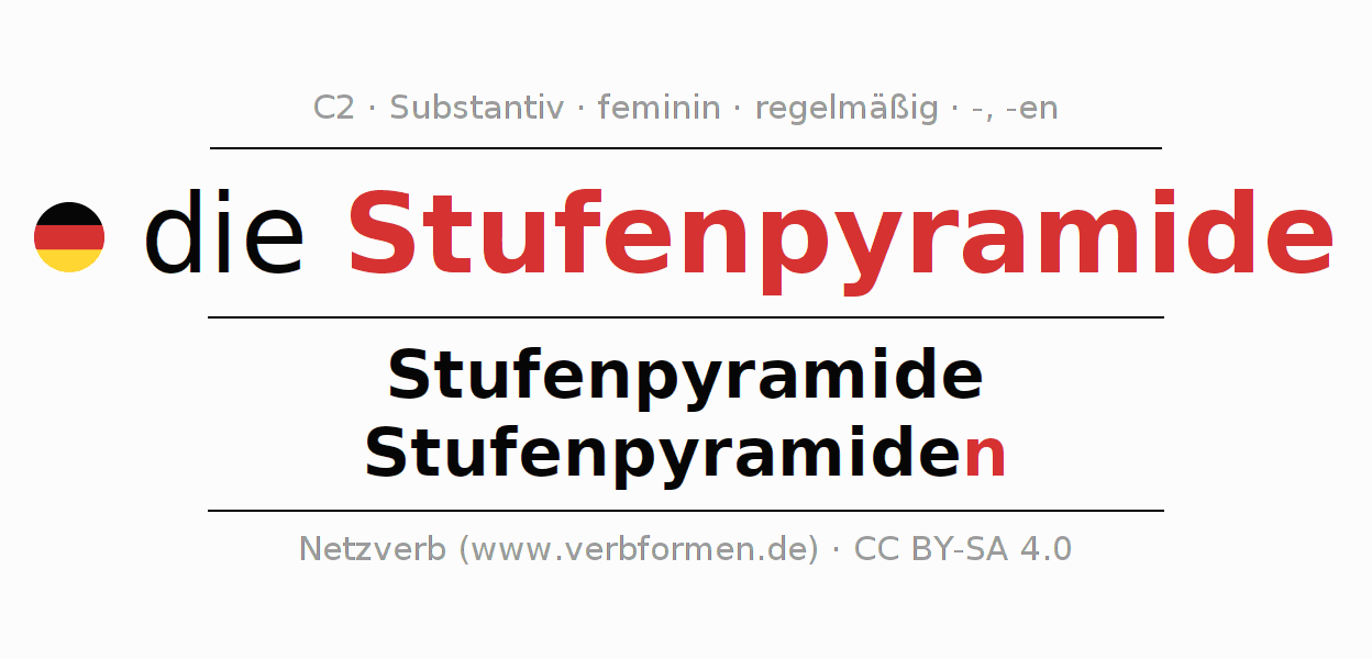 - Singular: die Stufenpyramide, der Stufenpyramide, der Stufenpyramide, die Stufenpyramide