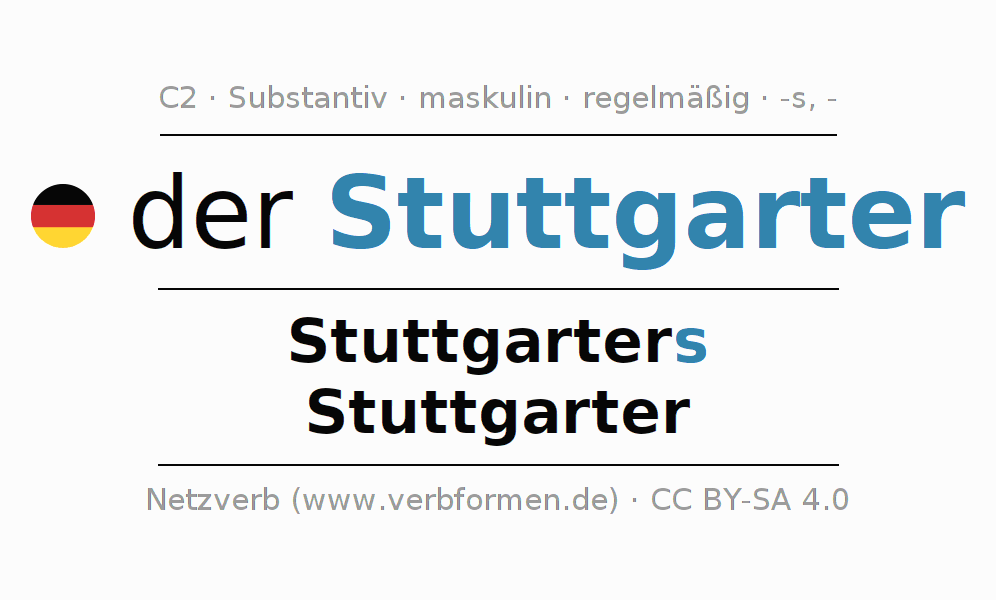 - Singular: der Stuttgarter, des Stuttgarters, dem Stuttgarter, den Stuttgarter