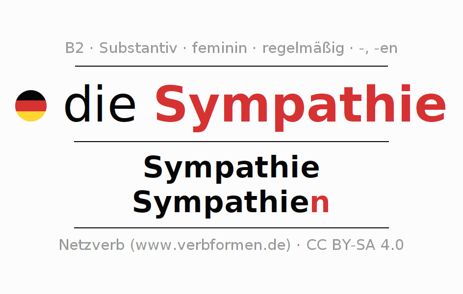 - Plural: die Sympathien, der Sympathien, den Sympathien, die Sympathien