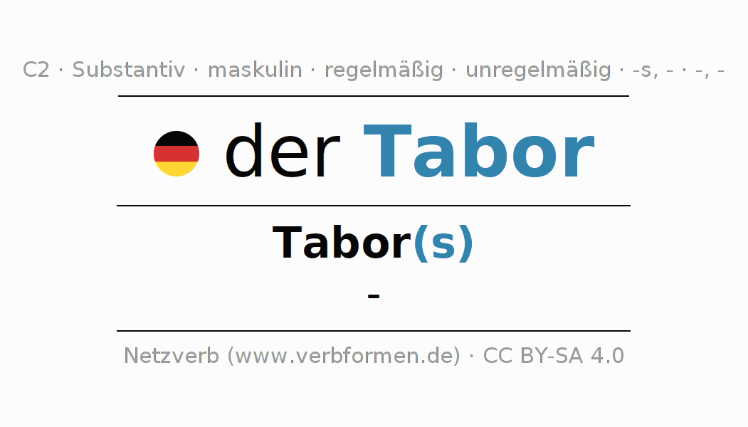 - Singular: der Tabor, des Tabor(s), dem Tabor, den Tabor
