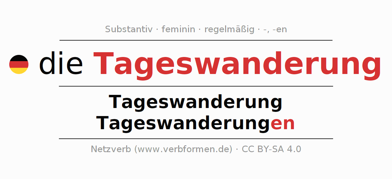 - Singular: die Tageswanderung, der Tageswanderung, der Tageswanderung, die Tageswanderung