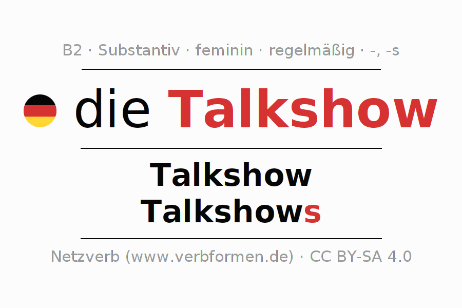 - Singular: die Talkshow, der Talkshow, der Talkshow, die Talkshow