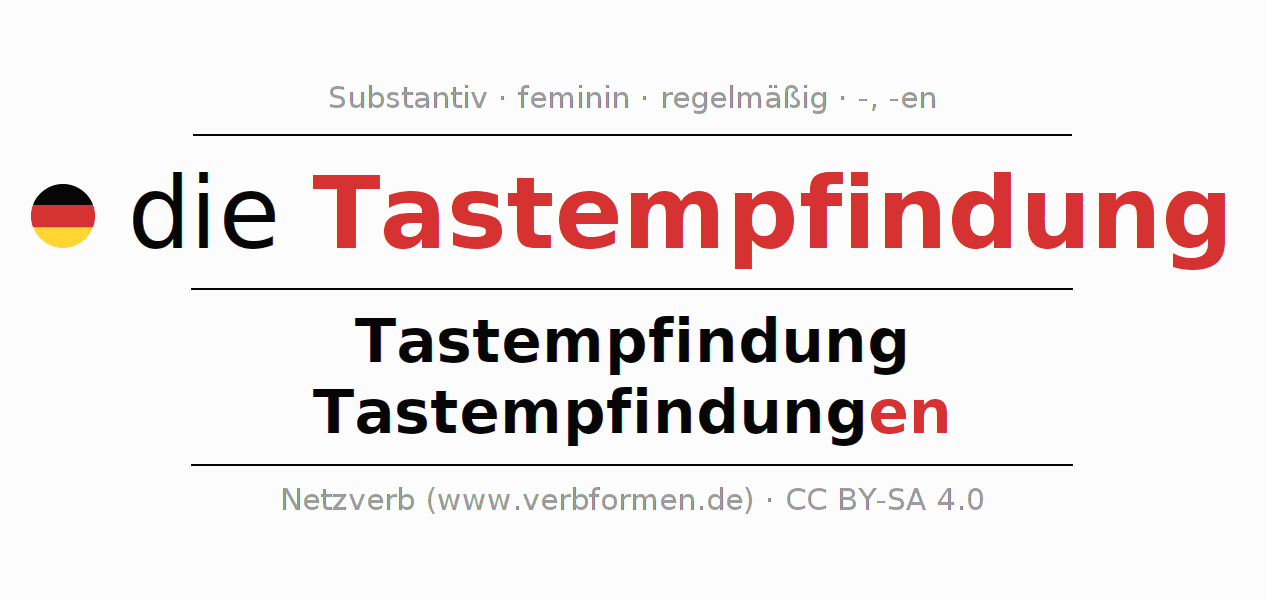 - Singular: die Tastempfindung, der Tastempfindung, der Tastempfindung, die Tastempfindung