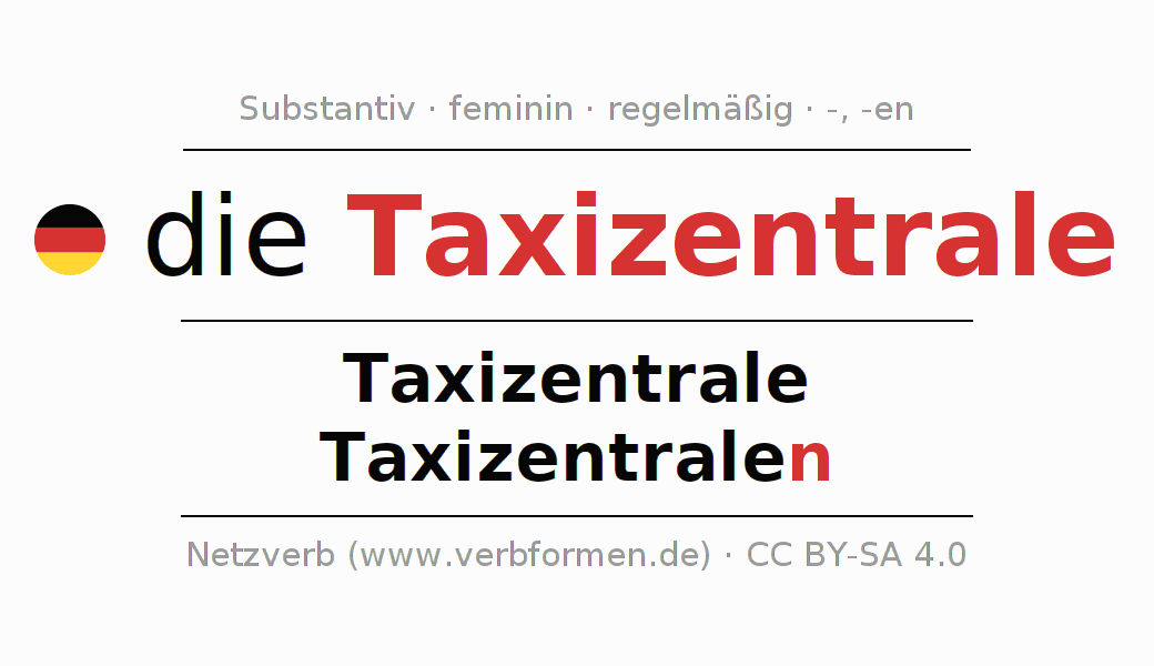 - Singular: die Taxizentrale, der Taxizentrale, der Taxizentrale, die Taxizentrale