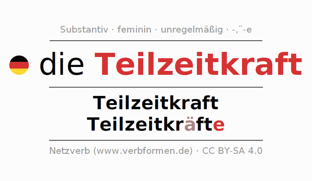 - Singular: die Teilzeitkraft, der Teilzeitkraft, der Teilzeitkraft, die Teilzeitkraft