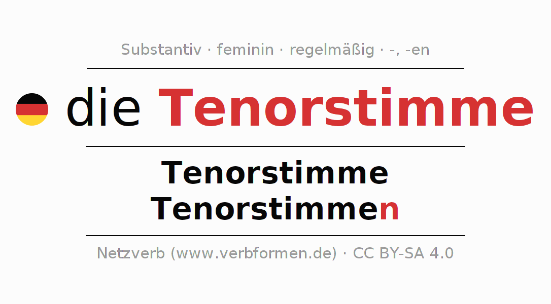 - Singular: die Tenorstimme, der Tenorstimme, der Tenorstimme, die Tenorstimme