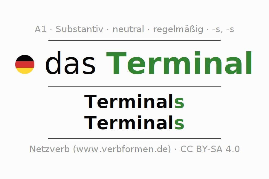 - Plural: die Terminals, der Terminals, den Terminals, die Terminals