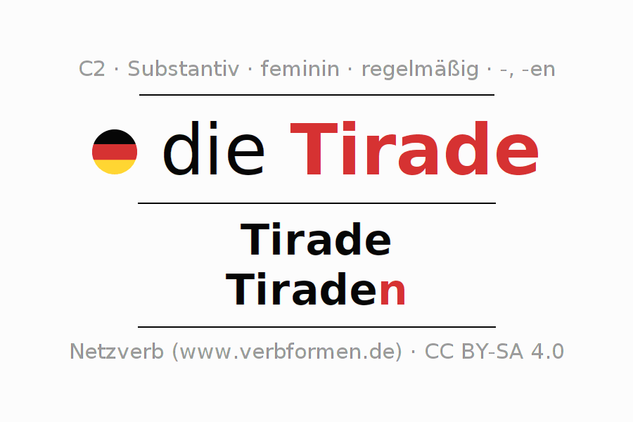 - Singular: die Tirade, der Tirade, der Tirade, die Tirade