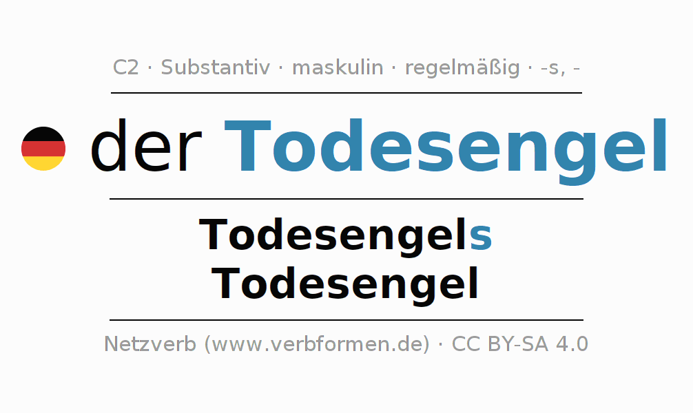 - Singular: der Todesengel, des Todesengels, dem Todesengel, den Todesengel