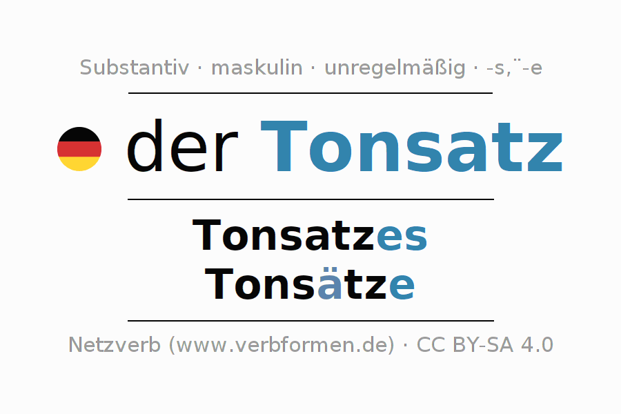 - Singular: der Tonsatz, des Tonsatzes, dem Tonsatz(e), den Tonsatz