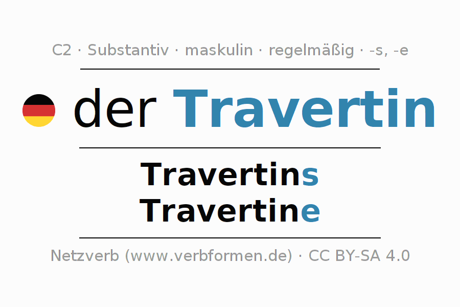 - Singular: der Travertin, des Travertins, dem Travertin, den Travertin