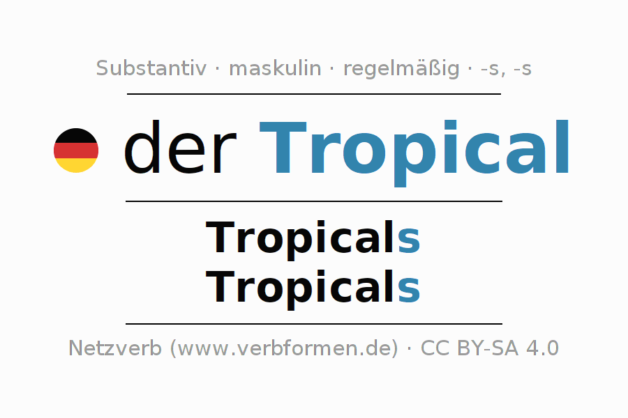 - Plural: die Tropicals, der Tropicals, den Tropicals, die Tropicals