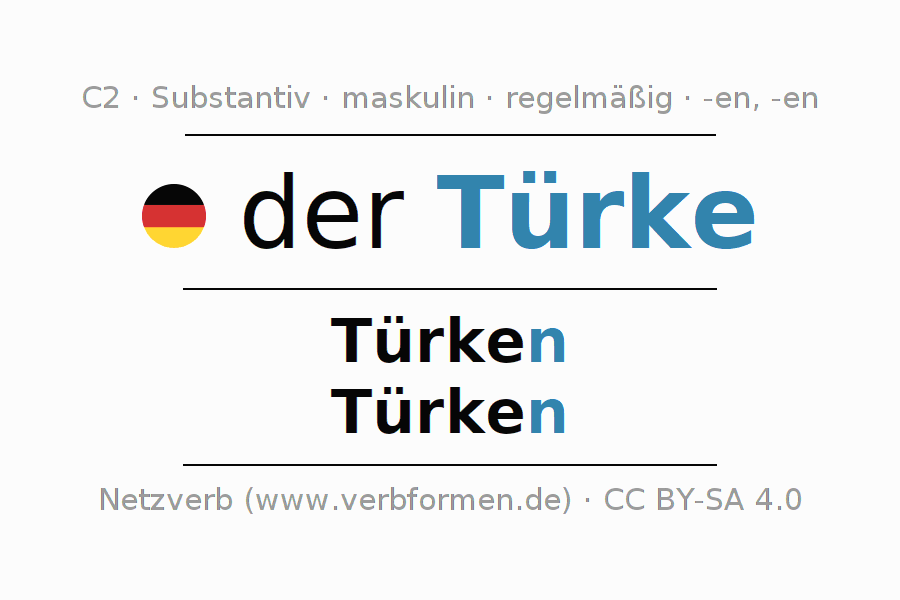 - Plural: die Türken, der Türken, den Türken, die Türken