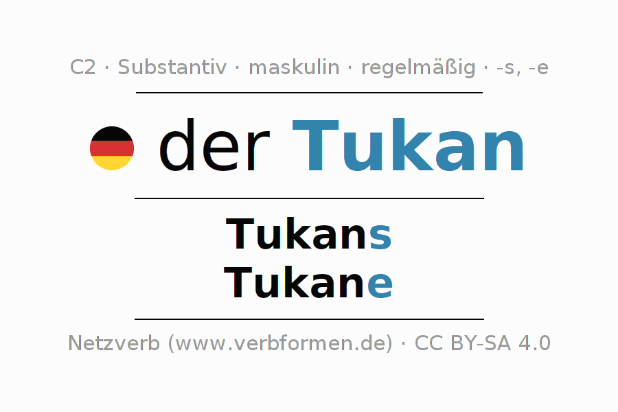 - Singular: der Tukan, des Tukans, dem Tukan, den Tukan