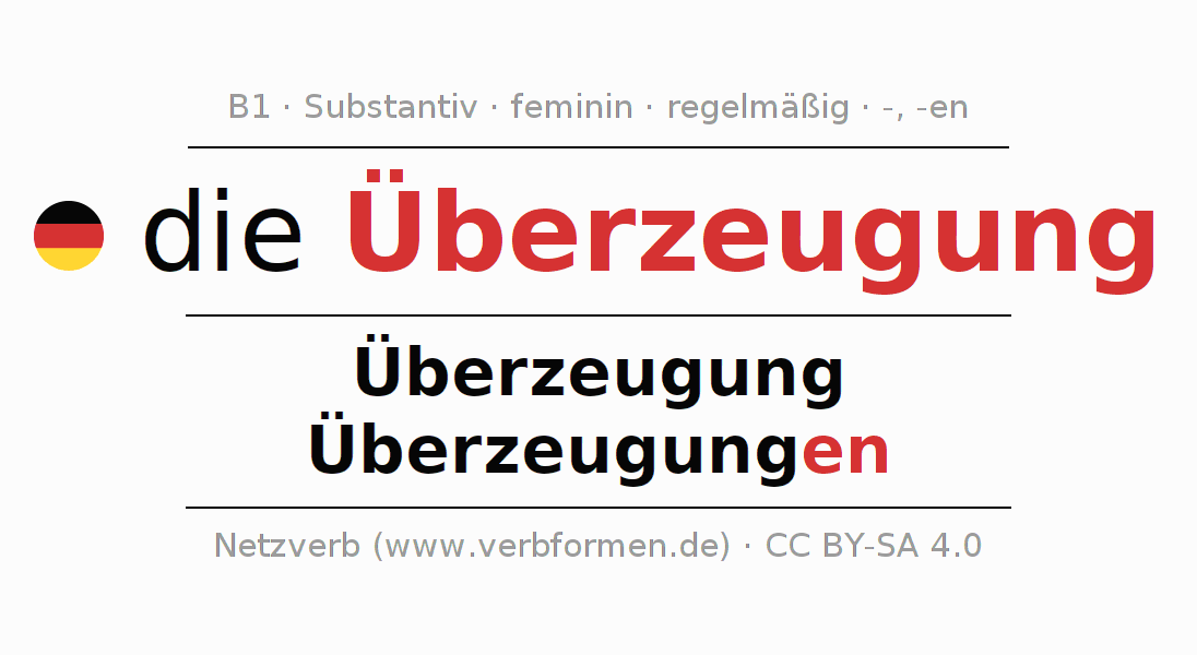 - Singular: die Überzeugung, der Überzeugung, der Überzeugung, die Überzeugung