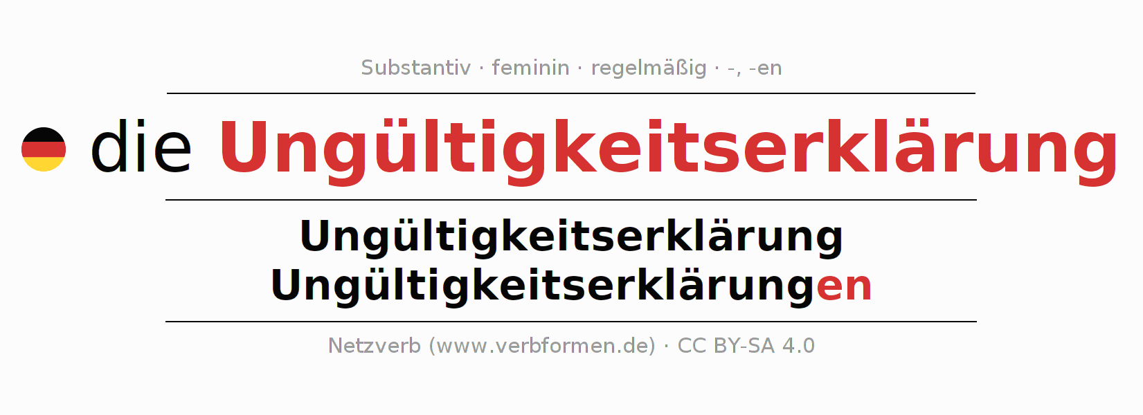 Zusammenfassung aller Deklinationsformen des Substantivs, Nomens bzw. Nennworts Ungültigkeitserklärung in allen Fällen bzw. Kasus