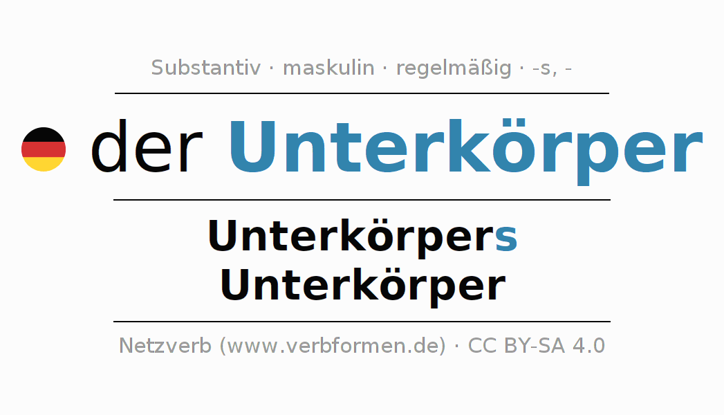 Zusammenfassung aller Deklinationsformen des Substantivs, Nomens bzw. Nennworts Unterkörper in allen Fällen bzw. Kasus