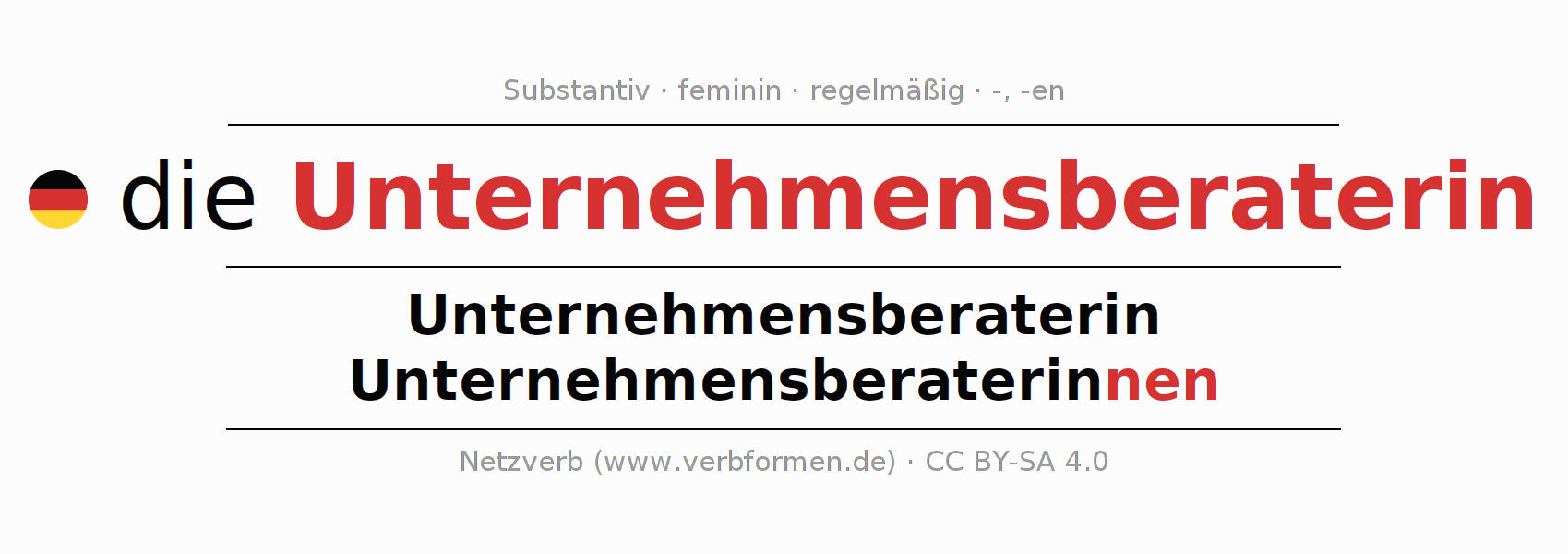 - Singular: die Unternehmensberaterin, der Unternehmensberaterin, der Unternehmensberaterin, die Unternehmensberaterin
