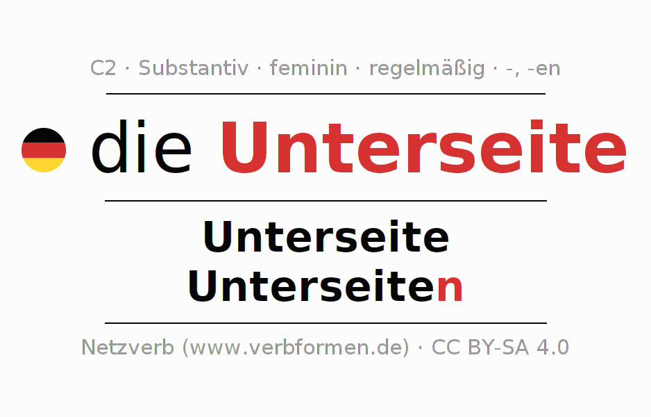 - Plural: die Unterseiten, der Unterseiten, den Unterseiten, die Unterseiten