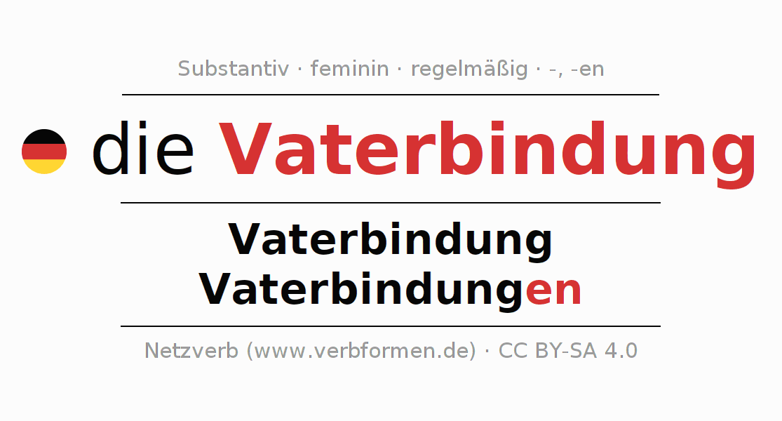 - Singular: die Vaterbindung, der Vaterbindung, der Vaterbindung, die Vaterbindung