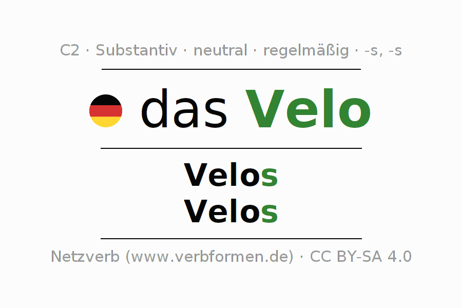 - Plural: die Velos, der Velos, den Velos, die Velos