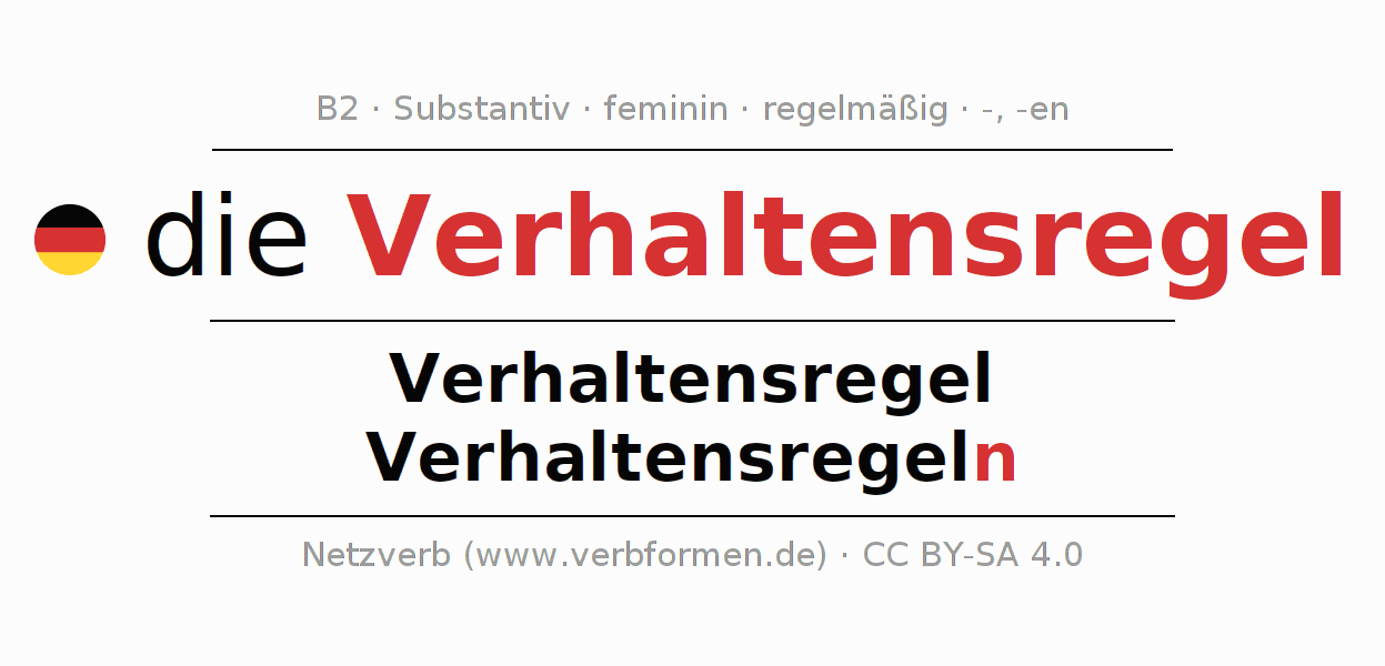 - Plural: die Verhaltensregeln, der Verhaltensregeln, den Verhaltensregeln, die Verhaltensregeln