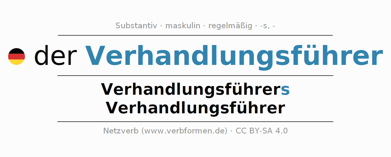 - Plural: die Verhandlungsführer, der Verhandlungsführer, den Verhandlungsführern, die Verhandlungsführer