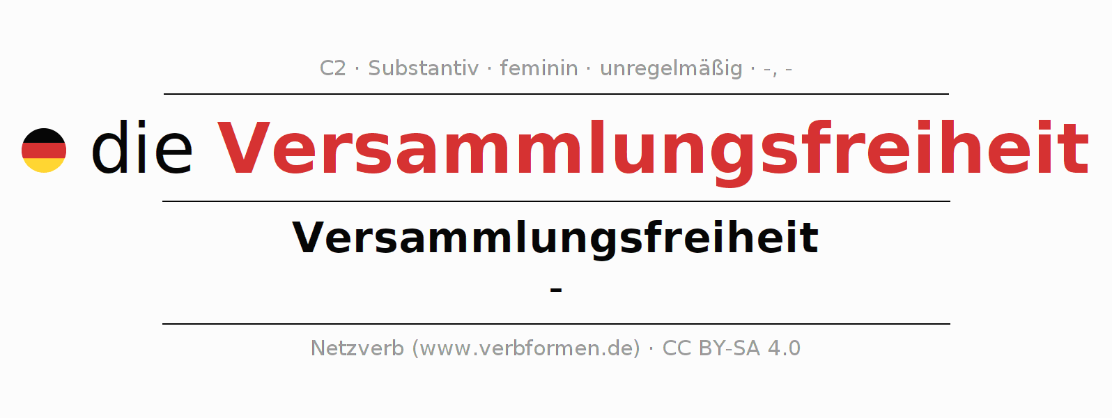 Zusammenfassung aller Deklinationsformen des Substantivs, Nomens bzw. Nennworts Versammlungsfreiheit in allen Fällen bzw. Kasus