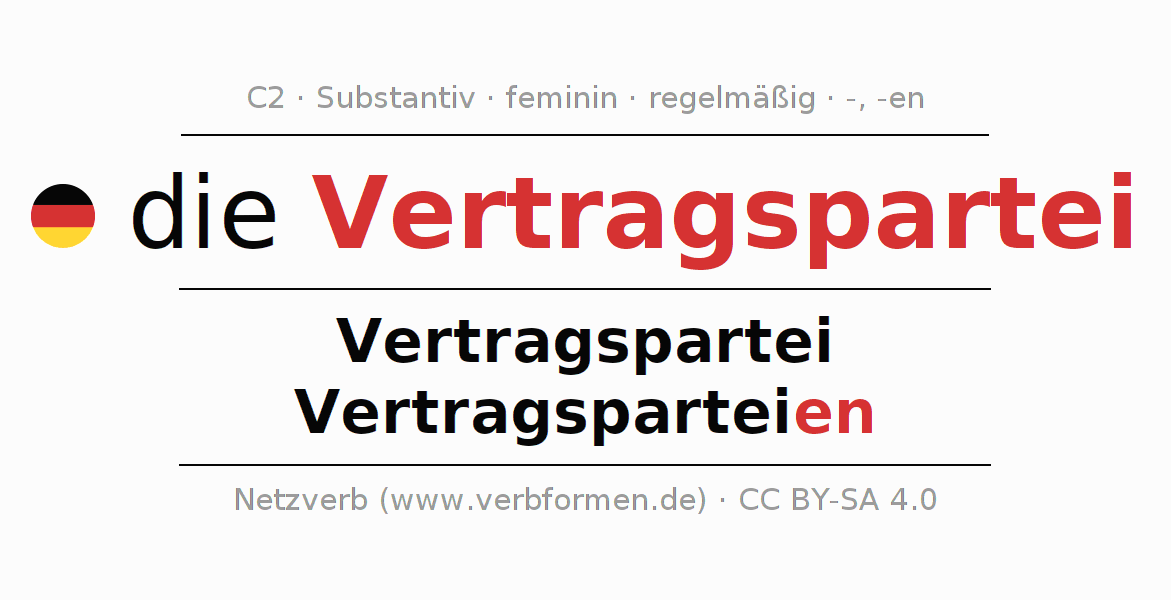 - Plural: die Vertragsparteien, der Vertragsparteien, den Vertragsparteien, die Vertragsparteien