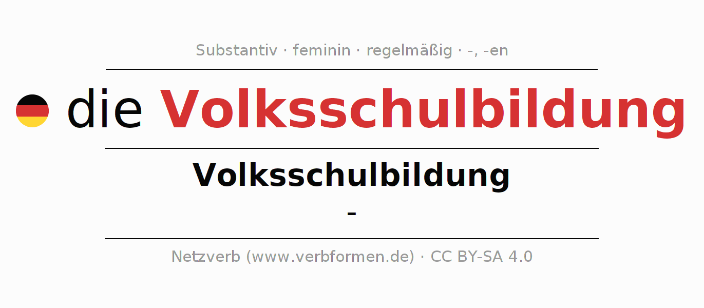 - Singular: die Volksschulbildung, der Volksschulbildung, der Volksschulbildung, die Volksschulbildung