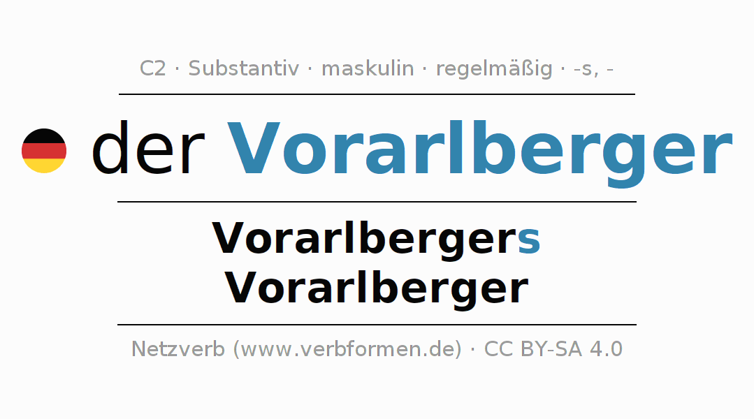 - Singular: der Vorarlberger, des Vorarlbergers, dem Vorarlberger, den Vorarlberger
