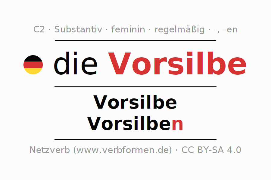 - Singular: die Vorsilbe, der Vorsilbe, der Vorsilbe, die Vorsilbe
