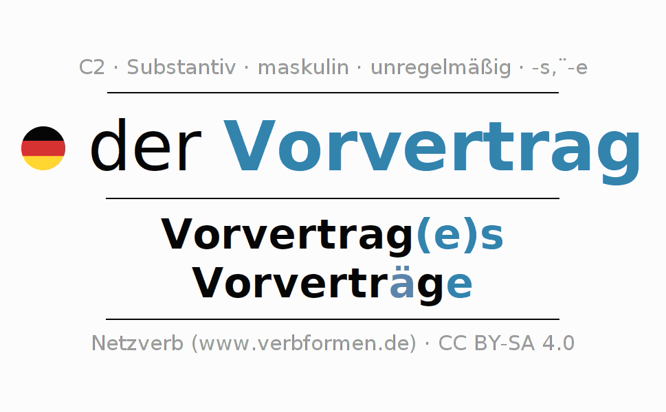 - Plural: die Vorverträge, der Vorverträge, den Vorverträgen, die Vorverträge