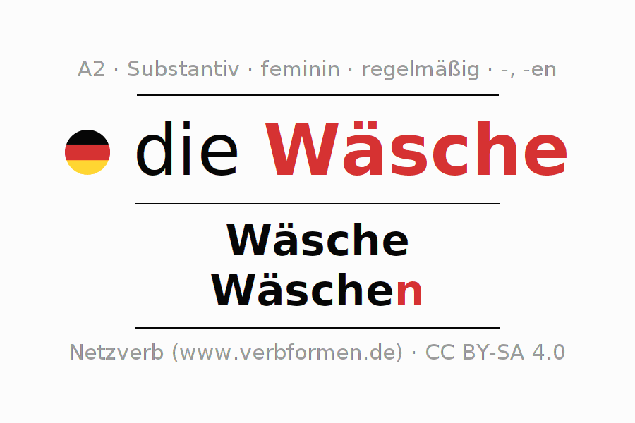 - Singular: die Wäsche, der Wäsche, der Wäsche, die Wäsche