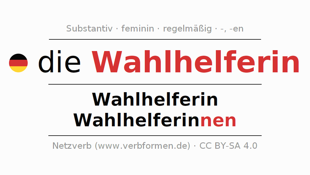 - Singular: die Wahlhelferin, der Wahlhelferin, der Wahlhelferin, die Wahlhelferin