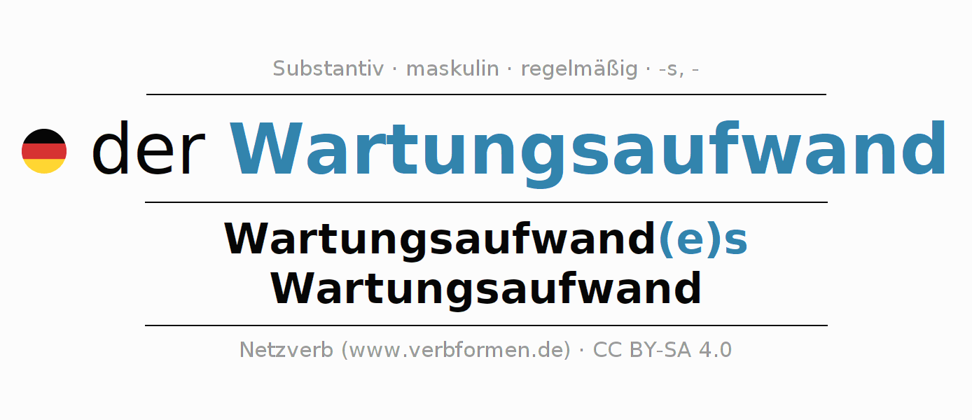 - Singular: der Wartungsaufwand, des Wartungsaufwand(e)s, dem Wartungsaufwand(e), den Wartungsaufwand
