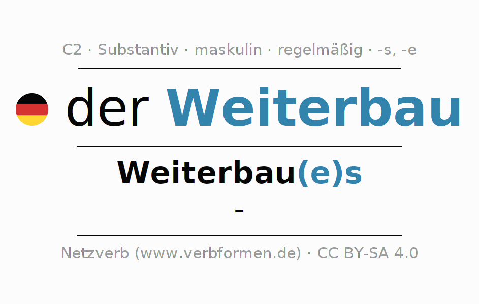 - Singular: der Weiterbau, des Weiterbau(e)s, dem Weiterbau, den Weiterbau