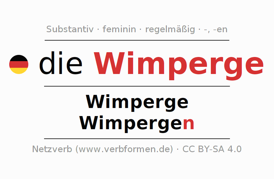 - Singular: die Wimperge, der Wimperge, der Wimperge, die Wimperge