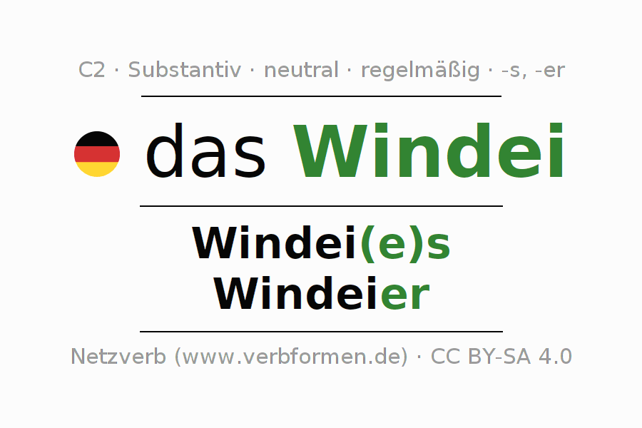 - Plural: die Windeier, der Windeier, den Windeiern, die Windeier