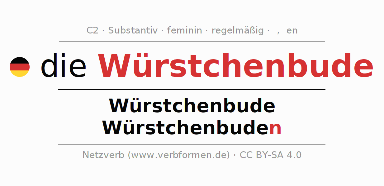 - Singular: die Würstchenbude, der Würstchenbude, der Würstchenbude, die Würstchenbude