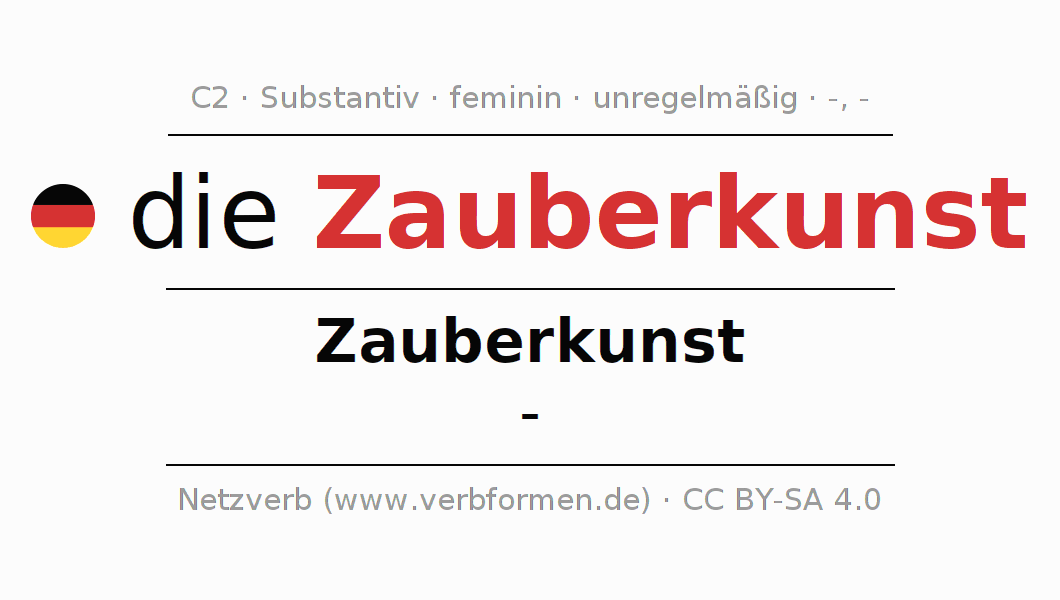 - Singular: die Zauberkunst, der Zauberkunst, der Zauberkunst, die Zauberkunst
