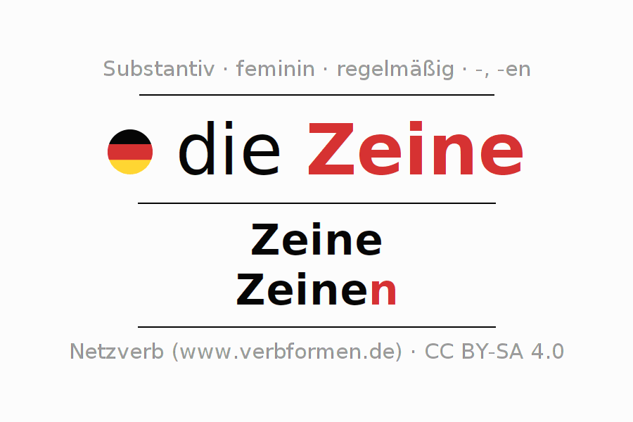 - Plural: die Zeinen, der Zeinen, den Zeinen, die Zeinen
