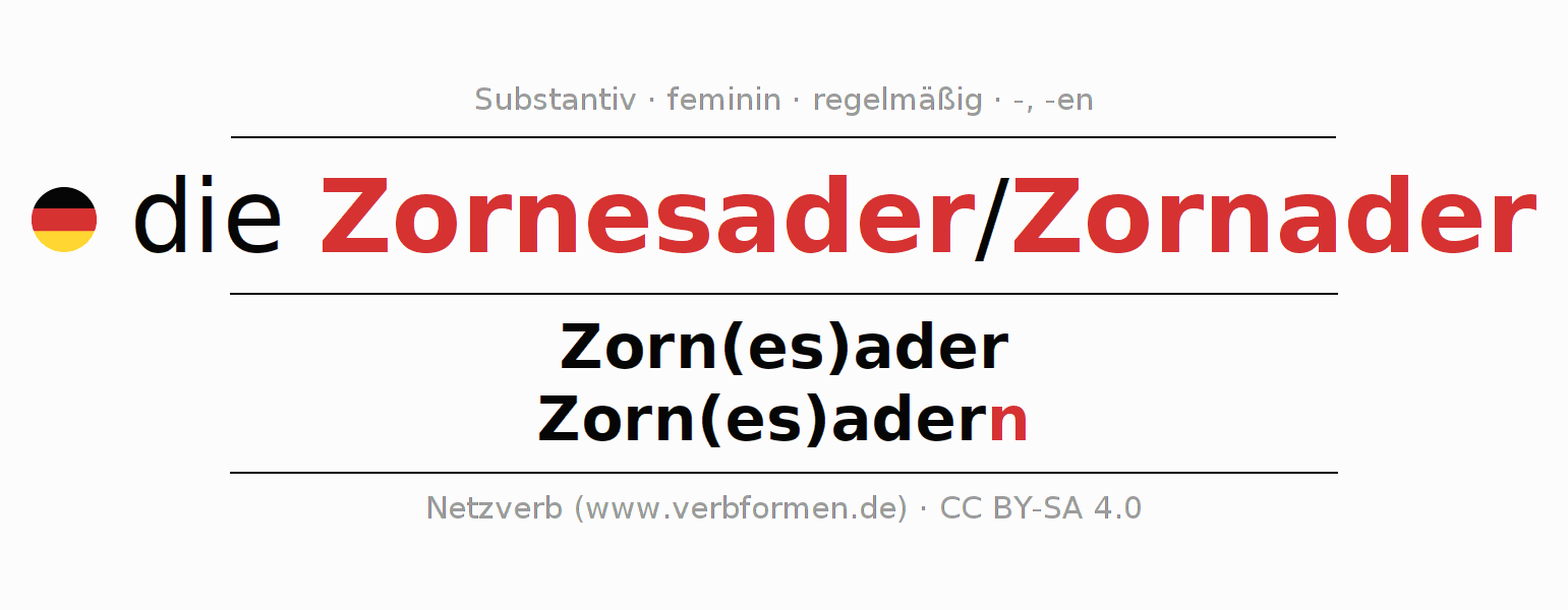 | Gen. | der Zorn(es)ader | der Zorn(es)adern |
