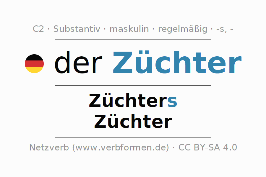 - Singular: der Züchter, des Züchters, dem Züchter, den Züchter