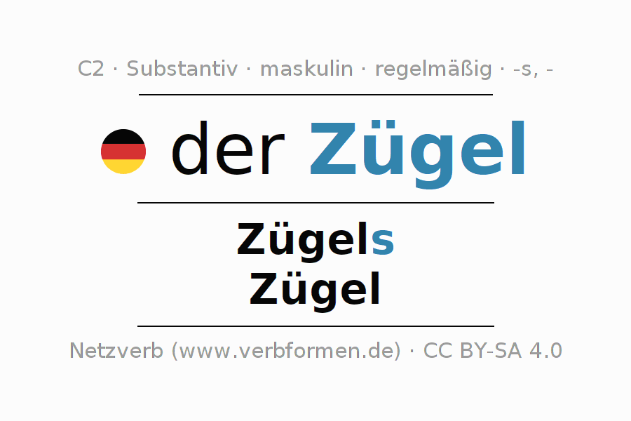 - Singular: der Zügel, des Zügels, dem Zügel, den Zügel
