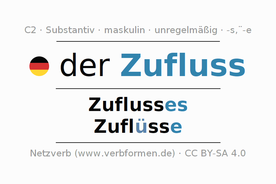 | Nom. | der Zufluss | die Zuflüsse |