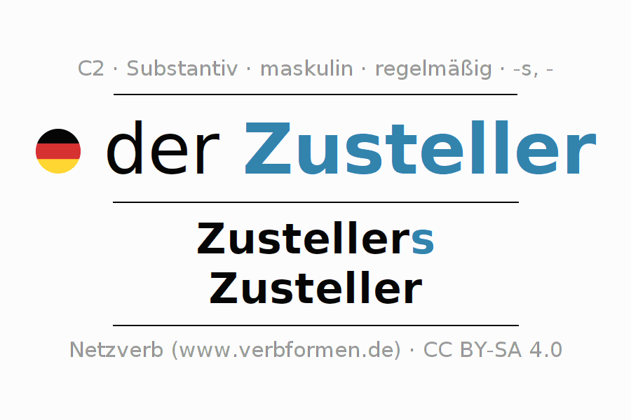 - Singular: der Zusteller, des Zustellers, dem Zusteller, den Zusteller