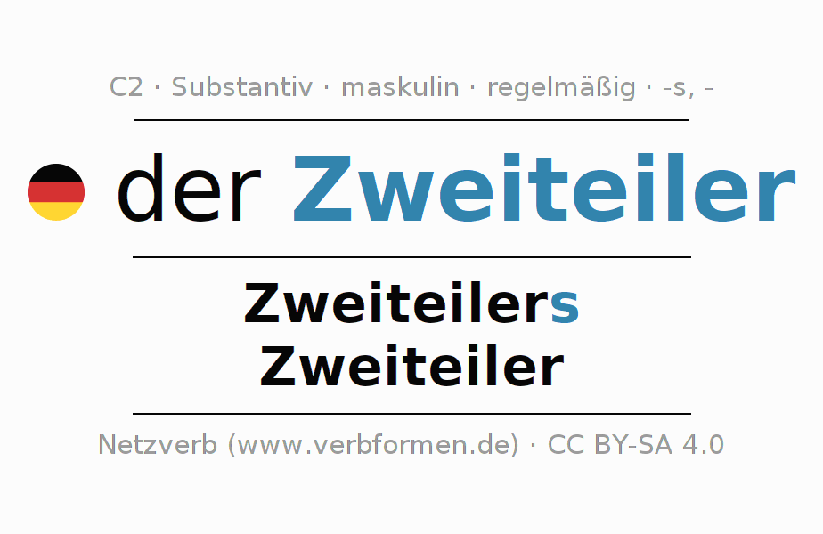 - Singular: der Zweiteiler, des Zweiteilers, dem Zweiteiler, den Zweiteiler
