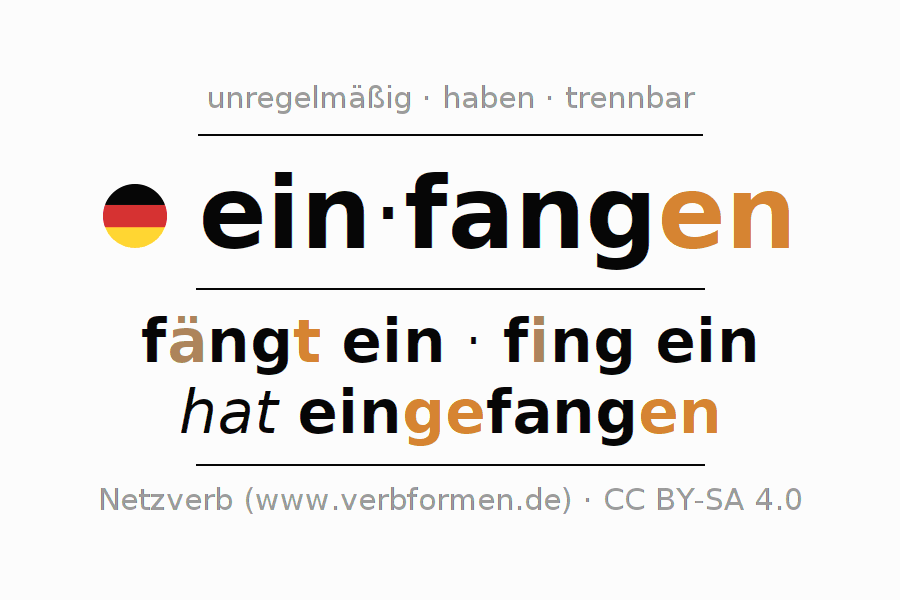 - Präsens: fang(e) (du) ein, fangen wir ein, fangt (ihr) ein, fangen Sie ein